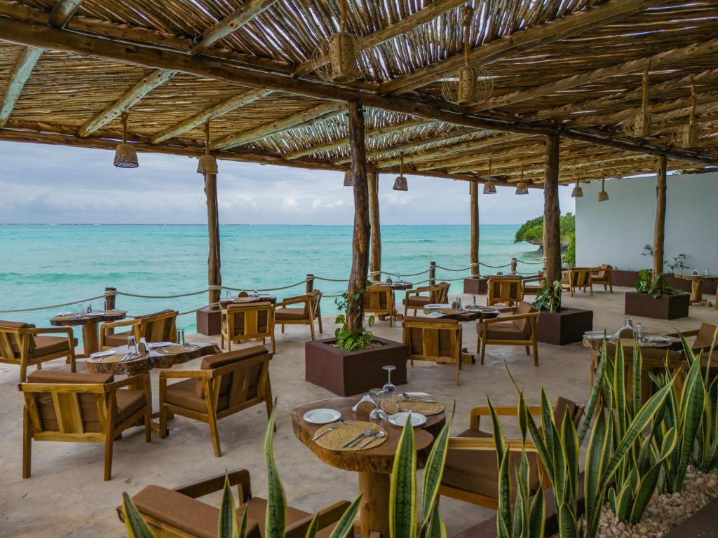 The outdoor pool sits just steps from the beach, offering the perfect spot to relax under the sun or cool off with a refreshing swim. The on-site restaurant serves a mix of local and international cuisine, highlighting freshly caught seafood and seasonal ingredients. Evenings are best spent dining by the water, watching the sky turn shades of pink and gold as the day fades away.